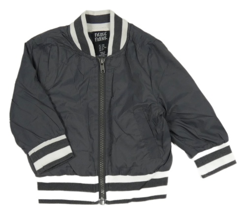 Tmavošedá šusťáková jarní bunda s bílým lemem
