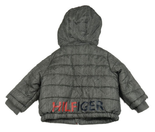 Šedá melírovaná šusťáková zimní bunda s proužky a kapucí Tommy Hilfiger