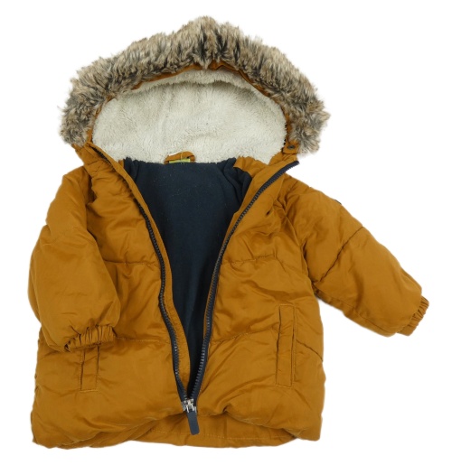 Bronzová prošívaná šusťáková zimní bunda s kapucí s kožešinou TAPE 'A L'OEIL