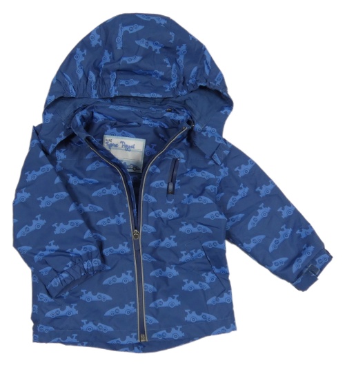 Tmavomodrá šusťáková jarní bunda s motokárami a kapucí TCM