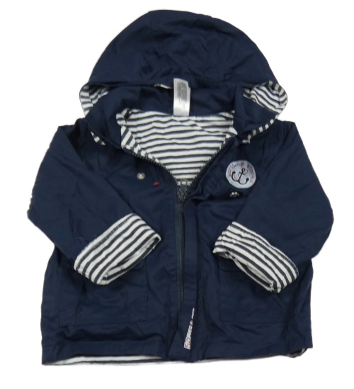 Tmavomodrá šusťáková jarní bunda s kotvou a kapucí C&A