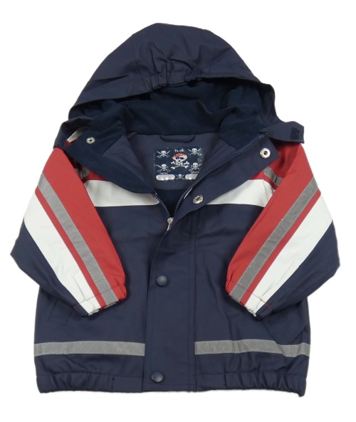 Tmavomodro-bílo-červená nepromokavá jarní bunda s odepínací kapucí TCM