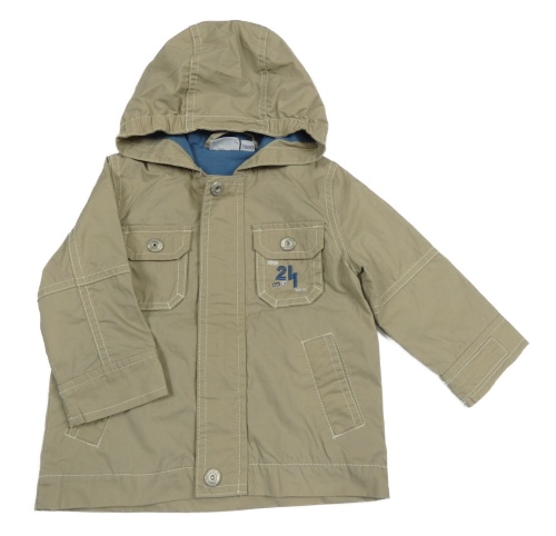 Béžová jarní bunda s číslem a kapucí impidimpi