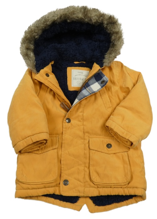Hořčicová šusťáková zateplená bunda s kapucí s kožešinou George