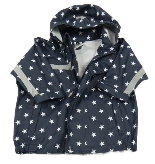 Tmavomodrá nepromokavá bunda s hvězdami a kapucí