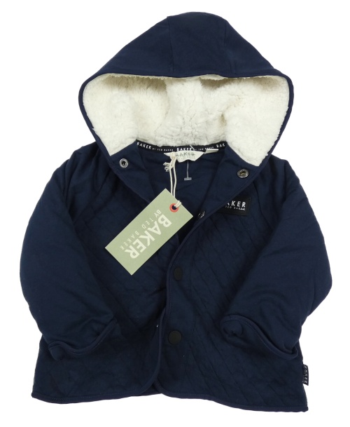 Nové - tmavomodrý prošívaný vyteplený podšitý kabátek s nášivkou a kapucí TED BAKER