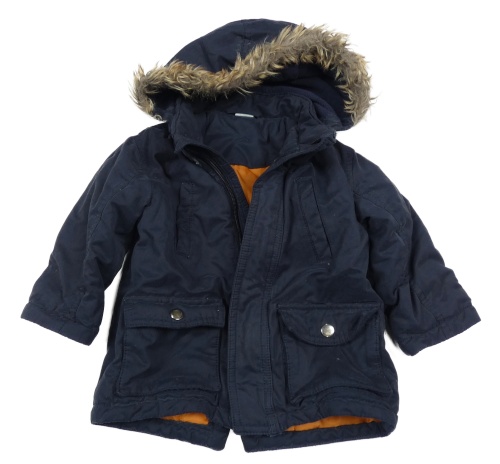 Tmavomodrá šusťáková zateplená bunda s kapucí H&M