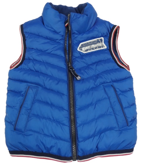 Modrá prošívaná šusťáková zateplená vesta s nášivkou Eat Ants