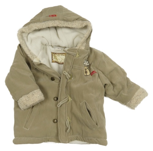 Béžová zimní bunda se sobem a kapucí