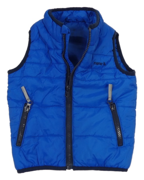 Cobaltově modrá prošívaná šusťáková zateplená vesta s logem name it.