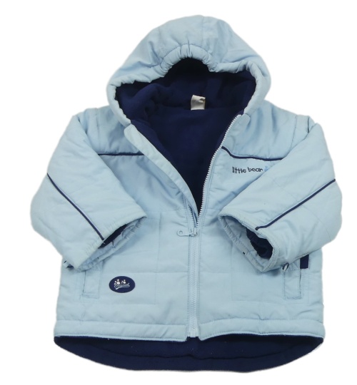Světlemodrá šusťáková zateplená bunda s nápisem a kapucí