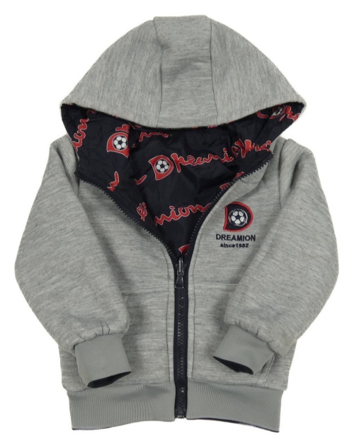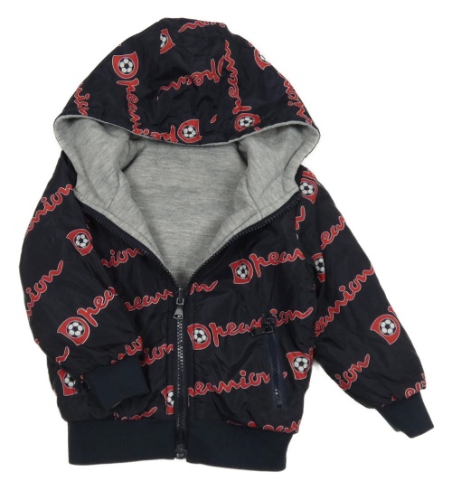 Tmavomodrá šusťáková obustranná zatelená bunda s míči a kapucí MG kids