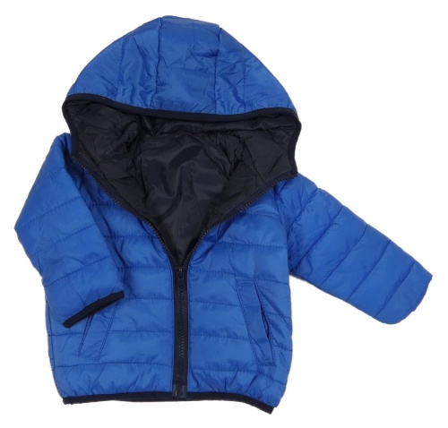 Modrá prošívaná šusťáková zateplená bunda s kapucí + sáček TisSAiA