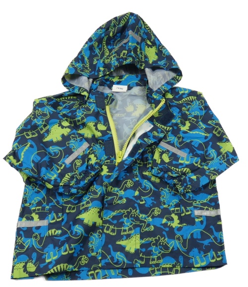 Tmavomodrá šusťáková nepromokavá bunda s dinosaury a kapucí Papagino
