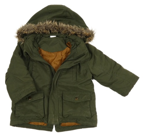 Khaki šusťáková zateplená bunda s kapucí s kožešinou H&M