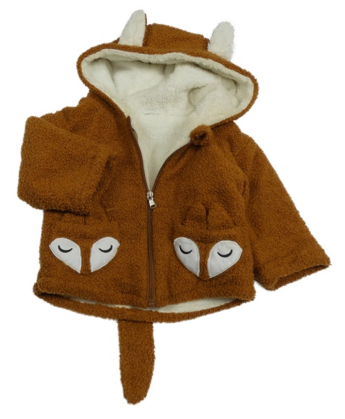 Hnědá huňatá zateplená bunda s liškami a kapucí