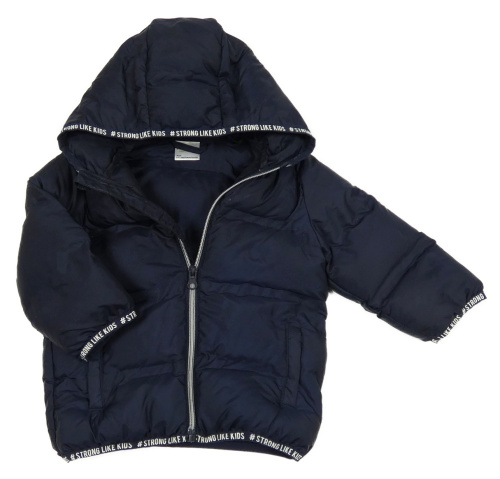 Tmavomodrá šusťáková zimní bunda s kapucí