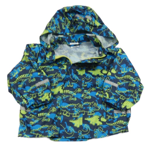 Tmavomodrá šusťáková nepromokavá bunda s dinosaury a odepínací kapucí Papagino