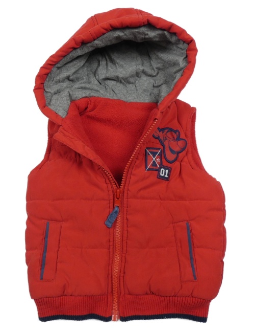 Červená šusťáková zateplená vesta s Tygříkem a kapucí George