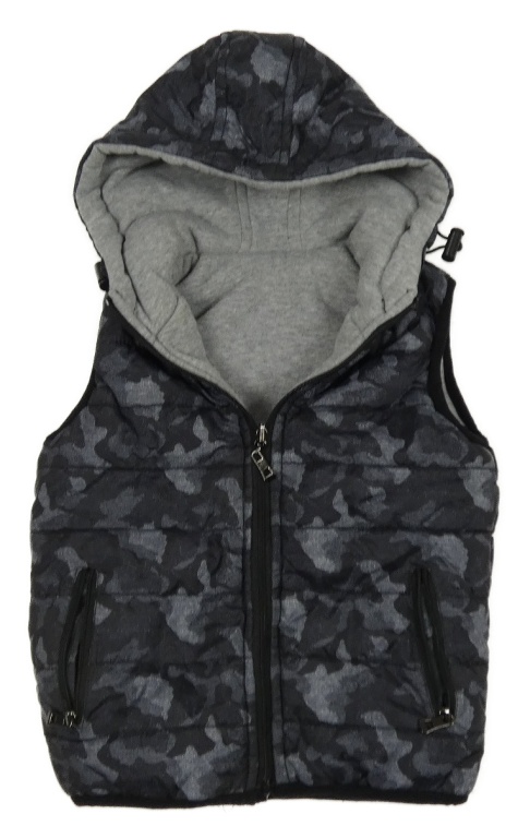 Černo-šedá army šusťáková zateplená oboustranná vesta s kapucí