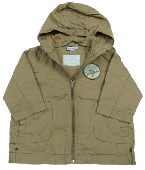 Béžová plátěná jarní bunda s letadlem a kapucí Impidimpi