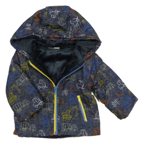 Tmavošedá melírovaná šusťáková zateplená bunda s auty a kapucí Mick Mack