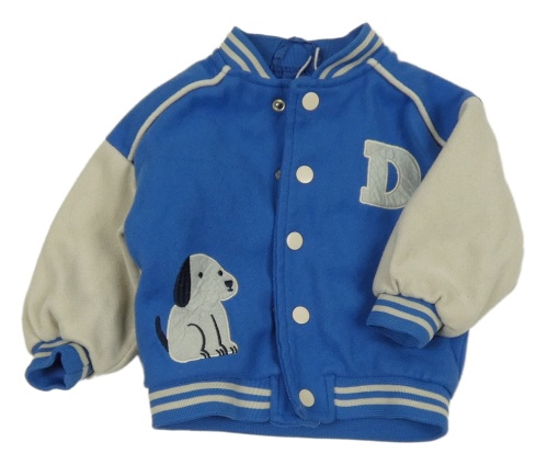Modro-šedá flaušová podšitá baseballová bunda se psem a písmenem Sinsay