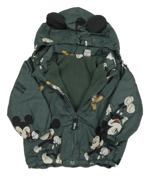 Tmavozelená šusťáková jarní bunda s Mickeym a kapucí H&M