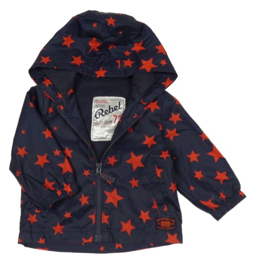 Tmavomodro-červená hvězdičkovaná šusťáková jarní bunda s kapucí Rebel
