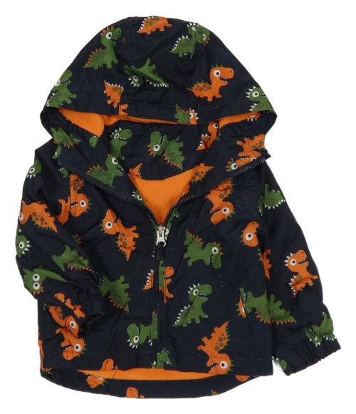 Tmavomodrá šusťáková jarní bunda s dinosaury a kapucí St. Bernard