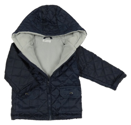 Tmavomodrá šusťáková prošívaná zateplená bunda s kapucí Pep&Co