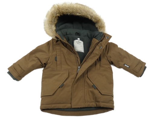 Hnědá šusťáková zimní bunda s kapucí s kožešinou Topomini