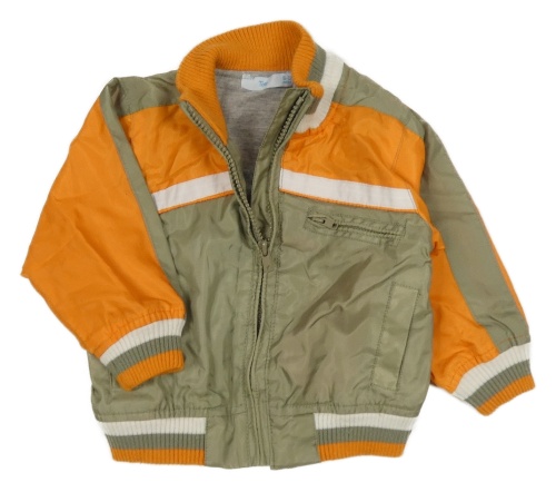 Khaki-oranžová šusťáková jarní bunda s kapucí