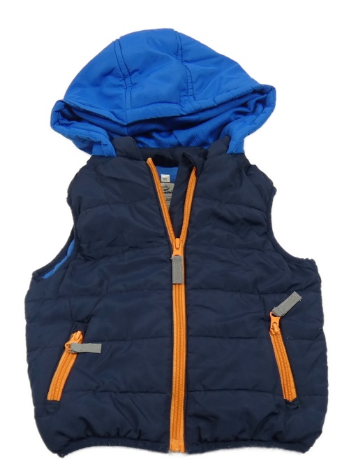Tmavomodro-modrá šusťáková zateplená vesta s kapucí Topomini