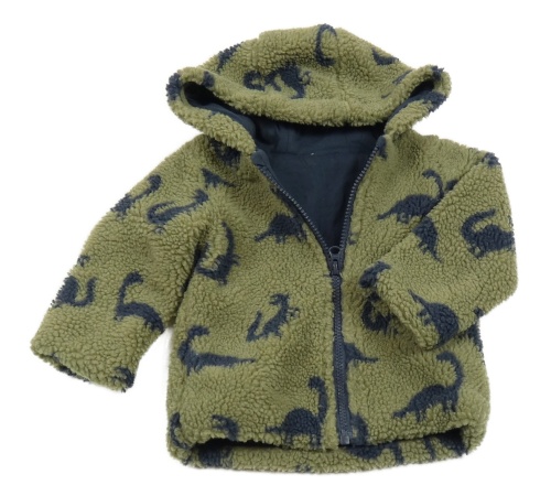 Khaki huňatá podšitá bunda s dinosaury a kapucí St. Bernard
