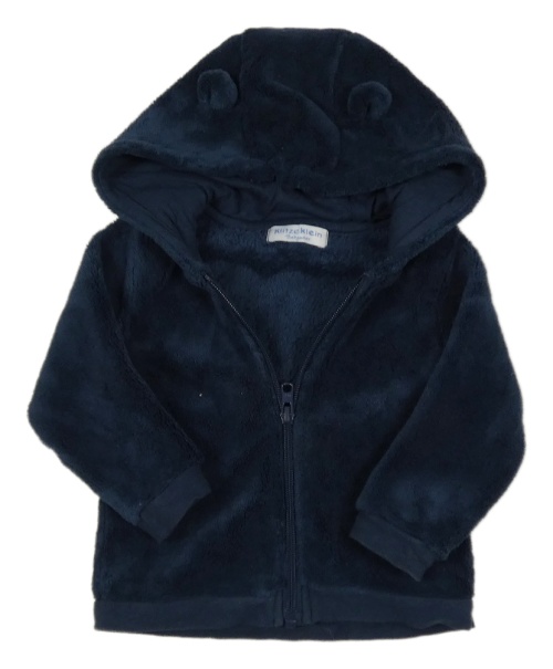 Tmavomodrá plyšová bunda s kapucí s oušky