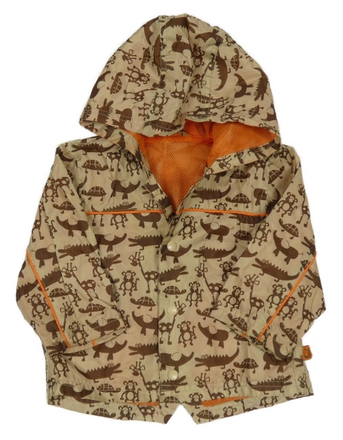 Písková šusťáková jarní bunda se zvířaty a kapucí Mothercare
