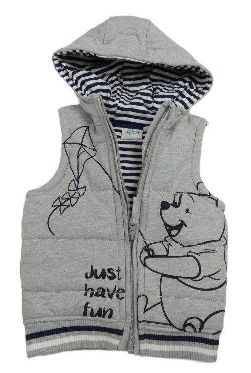 Šedá melírovaná prošívaná zateplená vesta s Pú a pruhy a kapucí Disney