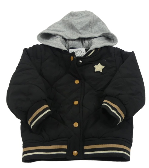 Černá šusťáková zateplená bunda s hvězdičkou a teplákovou kapucí F&F