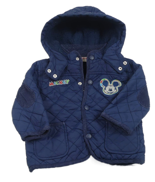 Tmavomodrá šusťáková prošívaná podzimní bunda s Mickeym a kapucí Disney