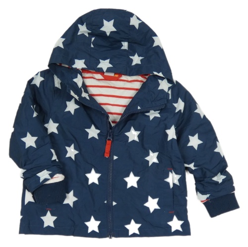 Tmavomodrá šusťáková podzimní bunda s hvězdičkami a kapucí Waitrose
