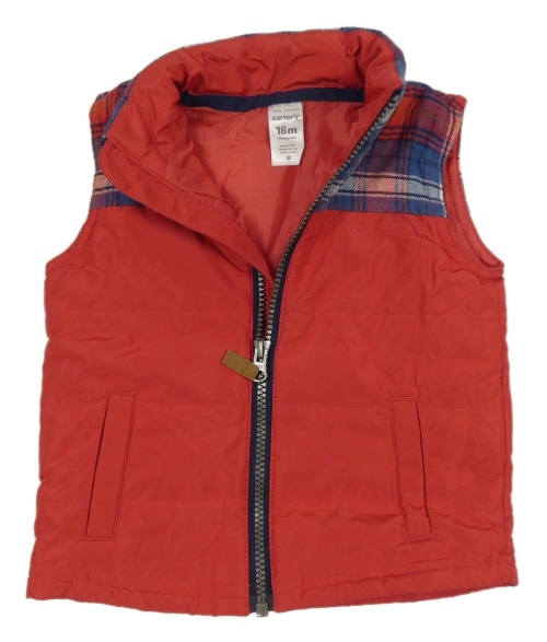 Červeno-kostkovaná šusťáková lehce zateplená vesta Carter's