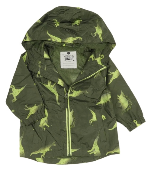 Khaki šusťáková podzimní bunda s dinosaury a kapucí F&F