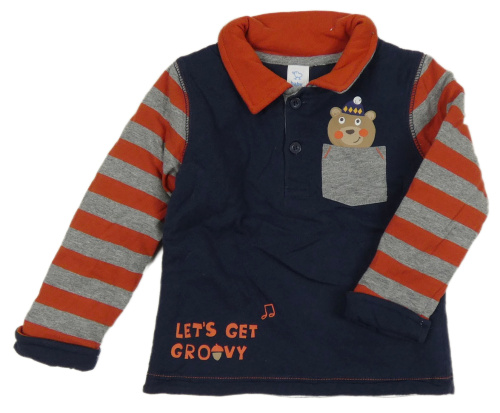 Tmavomodro-šedo-hnědá zateplená polo mikina s medvědem C&A
