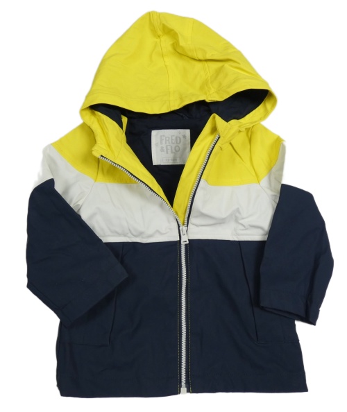 Žluto-bílo-tmavomodrá nepromokavá podzimní bunda s kapucí F&F