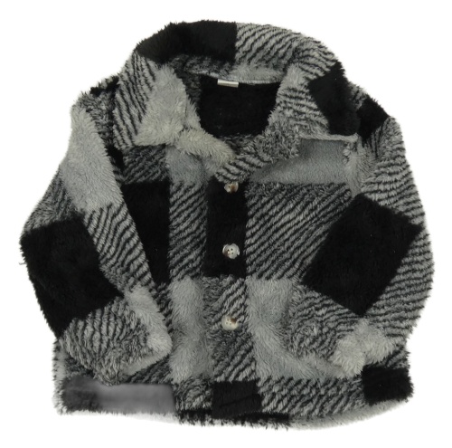 Šedo-černý kostkovaný chlupatý kabátek shein