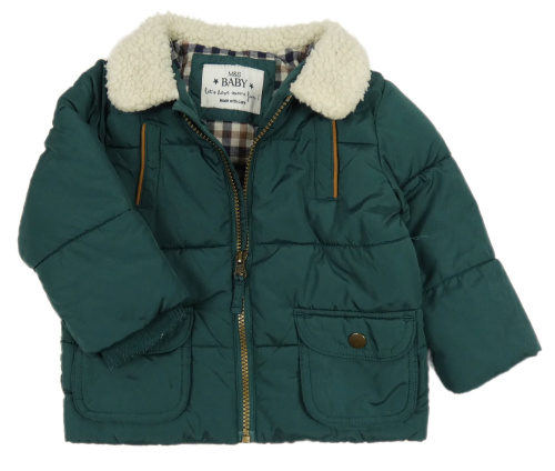 Tmavozelená šusťáková zimní bunda s beránkem M&S