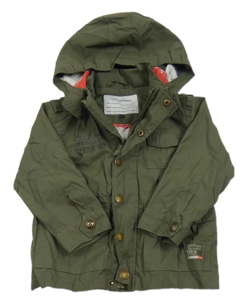 Khaki šusťáková podzimní bunda s nápisem a kapucí KappAhl