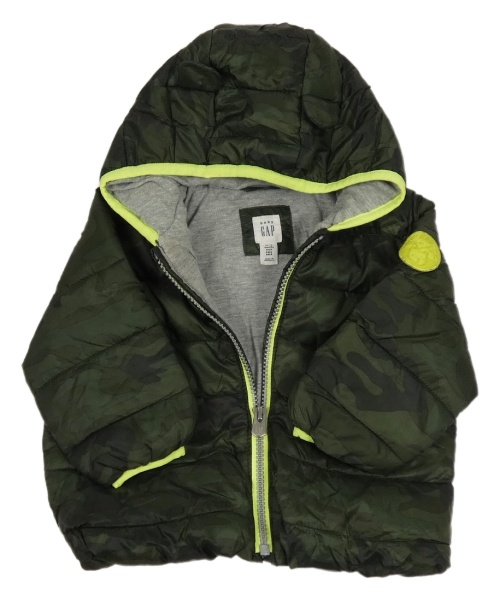 Khaki-černá army šusťáková prošívaná zimní bunda s kapucí GAP