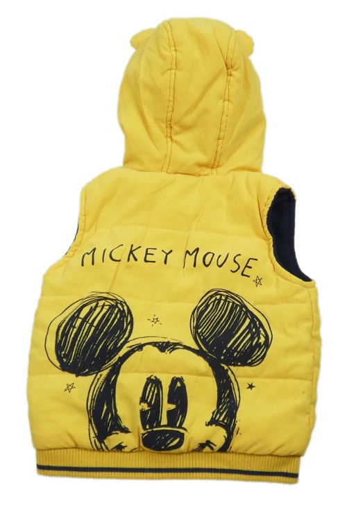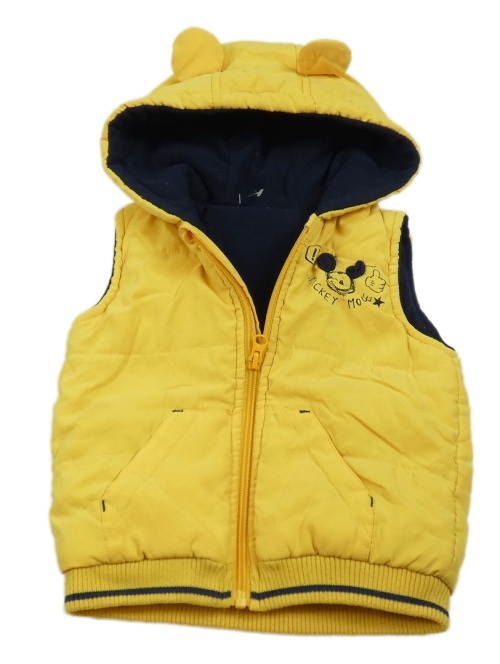 Žlutá šusťáková zateplená vesta s Mickey Mousem a kapucí George